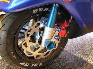 AF35-1500001以降の普通ライブディオ のDISK車両へ装着したい場合 KN企画 ディオ用フォークを ご購入ください。こちら 注意・・・ディオのフォークが適応しない 車種も発生します。 わからない場合はご相談ください。 <対応キャリパー> ZR ブレンボ または KN企画キャリパー ディオノーマルキャリパー が装着できません <材質> 内部(インナー) アルミ 外周(アウター) 鋳造+コーティング <装着際の注意点> 2層構造のDISKとなります。 カシメピンがブレーキパッドと緩衝する 場合 パッドを削る必要があります ご注意ください。。 |
