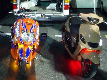 裏側には両面テープが付いております 回りますので曲線部分にも 装着可能 外装裏側 ライト回り等 柔軟に装着が可能 注意 配線処理は各自行ってください。 |