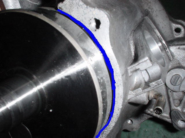 114CCキットのクランクシャッフトを装着するための加工部分(カウンターウエイト部分)