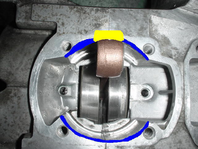 黄い部分に関しまして黄色上部に丁度、シリンダーに掃気ポート(第3ポート)が付いておりますので削っていただけましたらさらに効果はあります