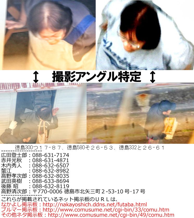 産地偽装運び屋用ディーゼルワゴン車購入して産地偽装バレて地元ニュース報道、全部高野しいたけに丸投げしている間にも孝次郎83歳尚子43歳家遊び。徳島県徳島市北矢三町2丁目53 番地市営住宅1棟10号室高野恵津子36歳清次郎考次郎83歳恒子ツネ子93歳48時間付きまとい臭いシワシワ黒シミだらけかきむしり跡・粉吹きン。高野しいたけ産地偽装フォーカス徳島JRTパパラッチ